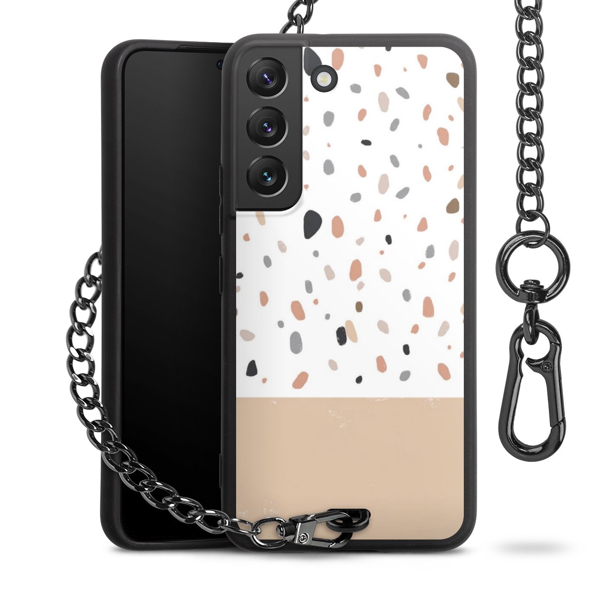 • Mattschwarze Handyhülle mit Metallkette