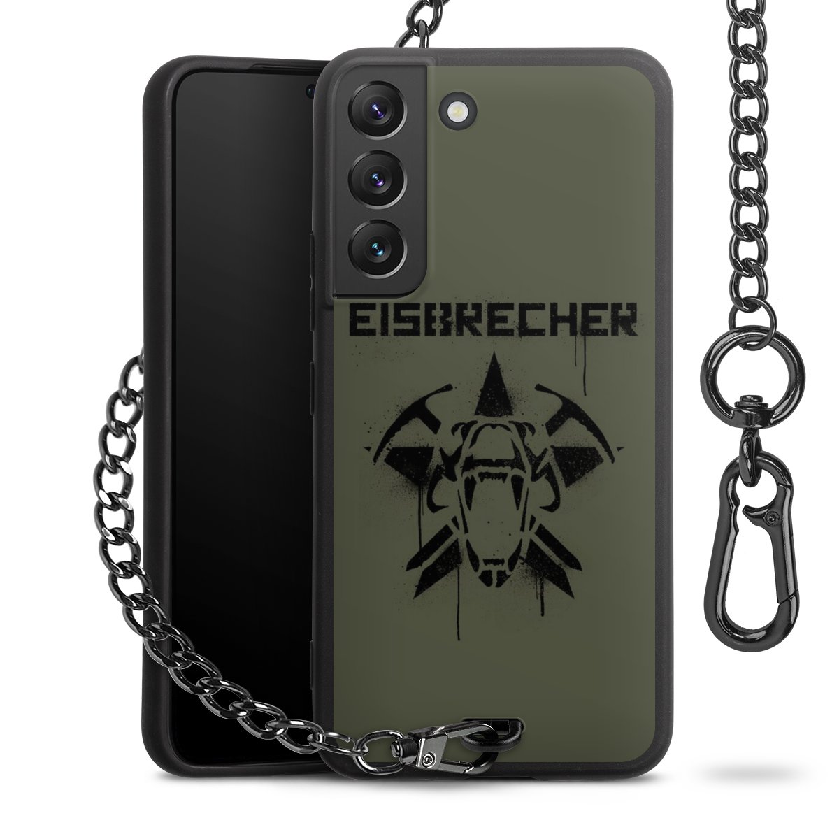 • Mattschwarze Handyhülle mit Metallkette