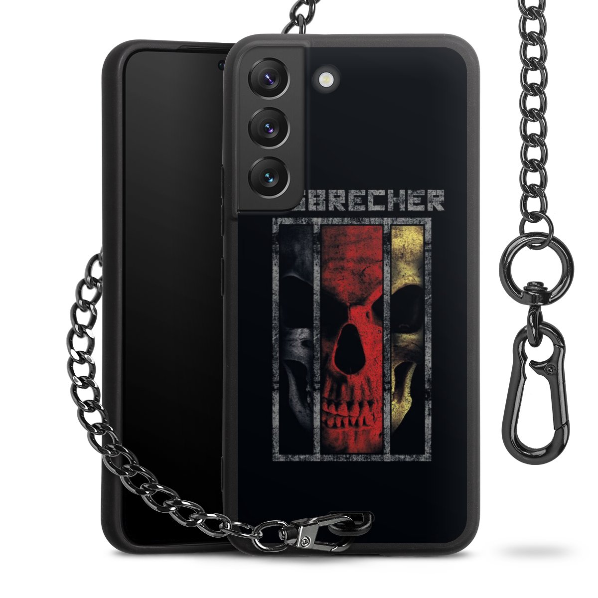 Die mattschwarze Silikon-Handyhülle besteht aus robustem TPU (thermoplastisches Polyurethan). Sie ist flexibel und schützt Dein Smartphone vor Stößen und Kratzern. Die Kette sowie der Karabinerhaken sind aus Metall in Gunmetal-Optik gefertigt. Für dieses Produkt kommen ausschließlich TÜV-geprüfte Materialien zum Einsatz.