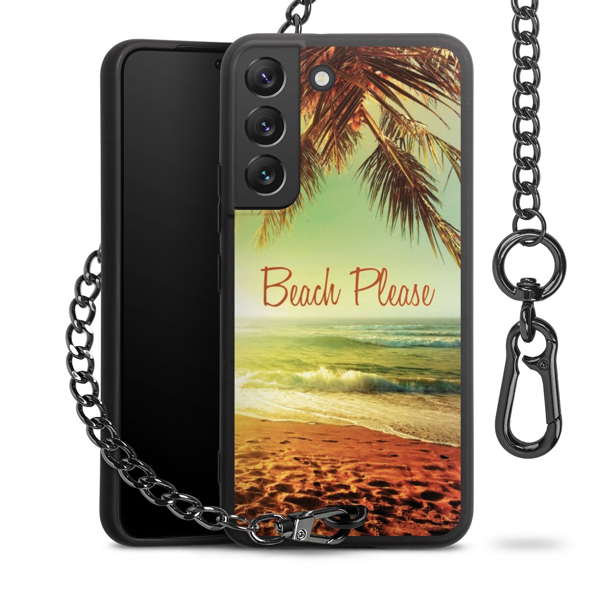 - Mattschwarze Handyhülle mit Metallkette