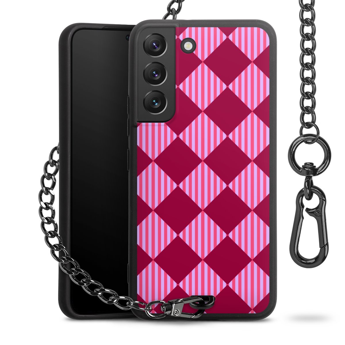- Mattschwarze Handyhülle mit Metallkette