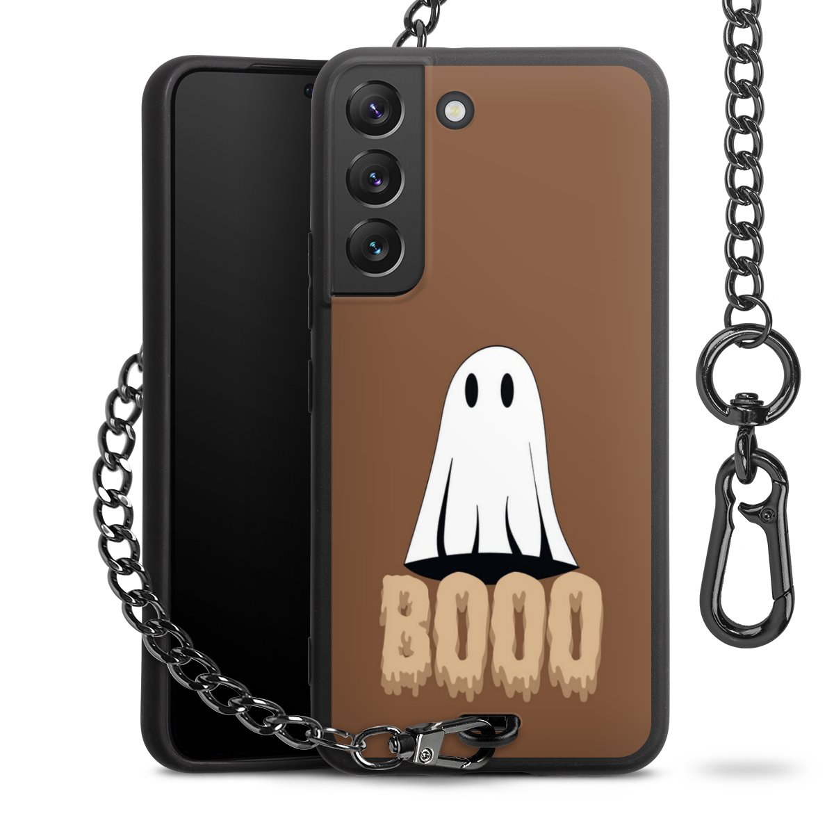 - Mattschwarze Handyhülle mit Metallkette