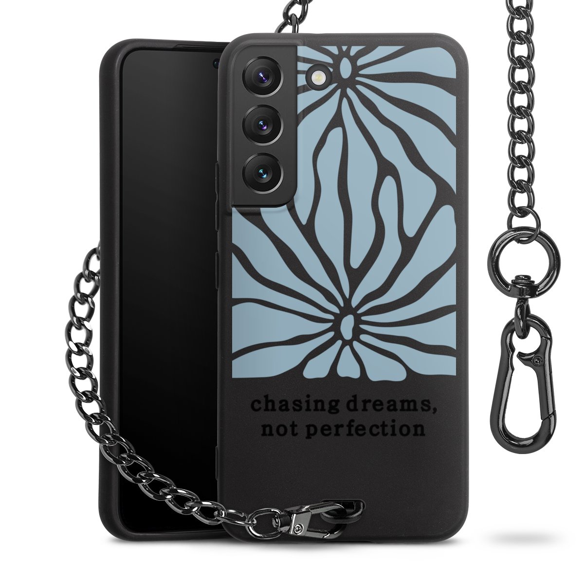 - Mattschwarze Handyhülle mit Metallkette