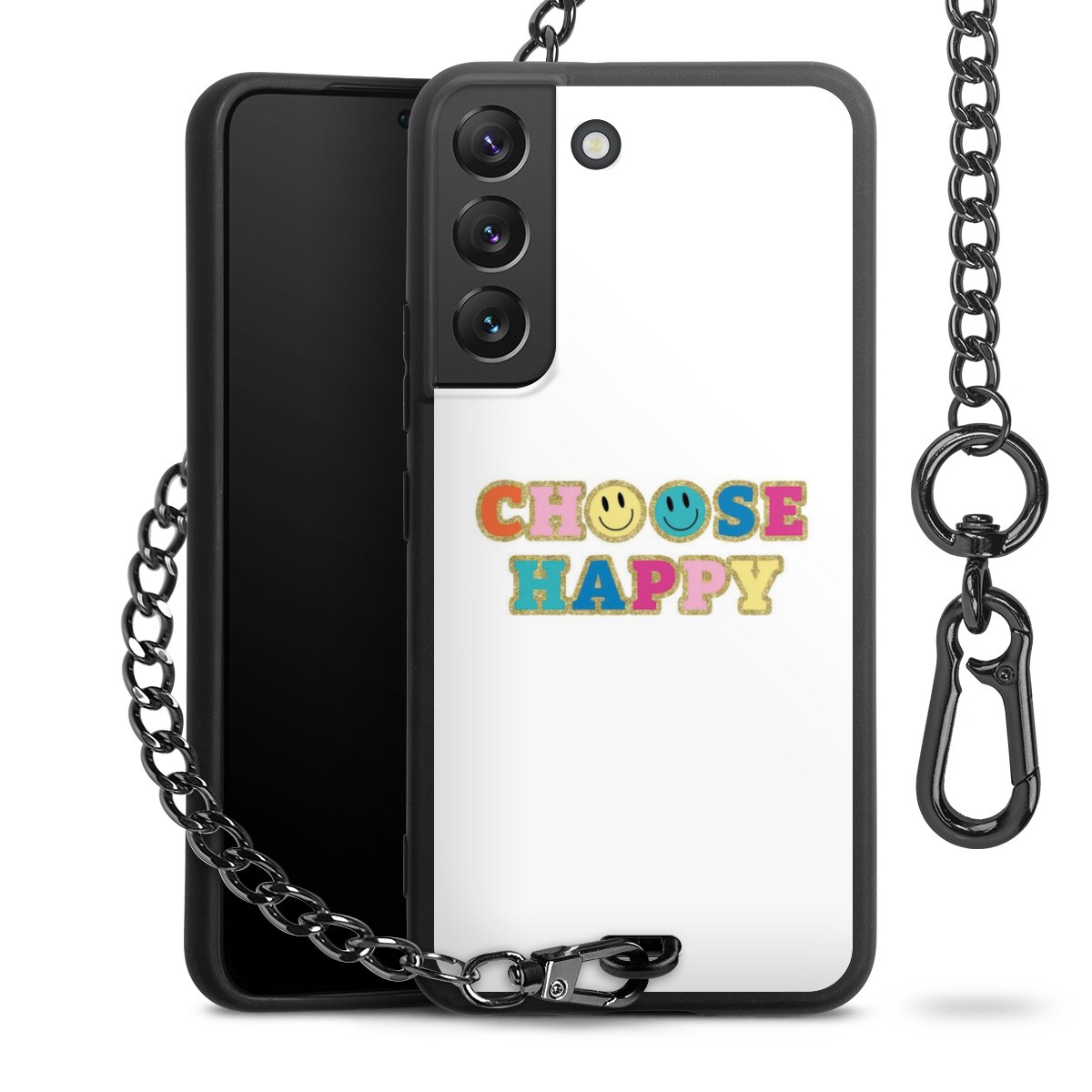 • Mattschwarze Handyhülle mit Metallkette