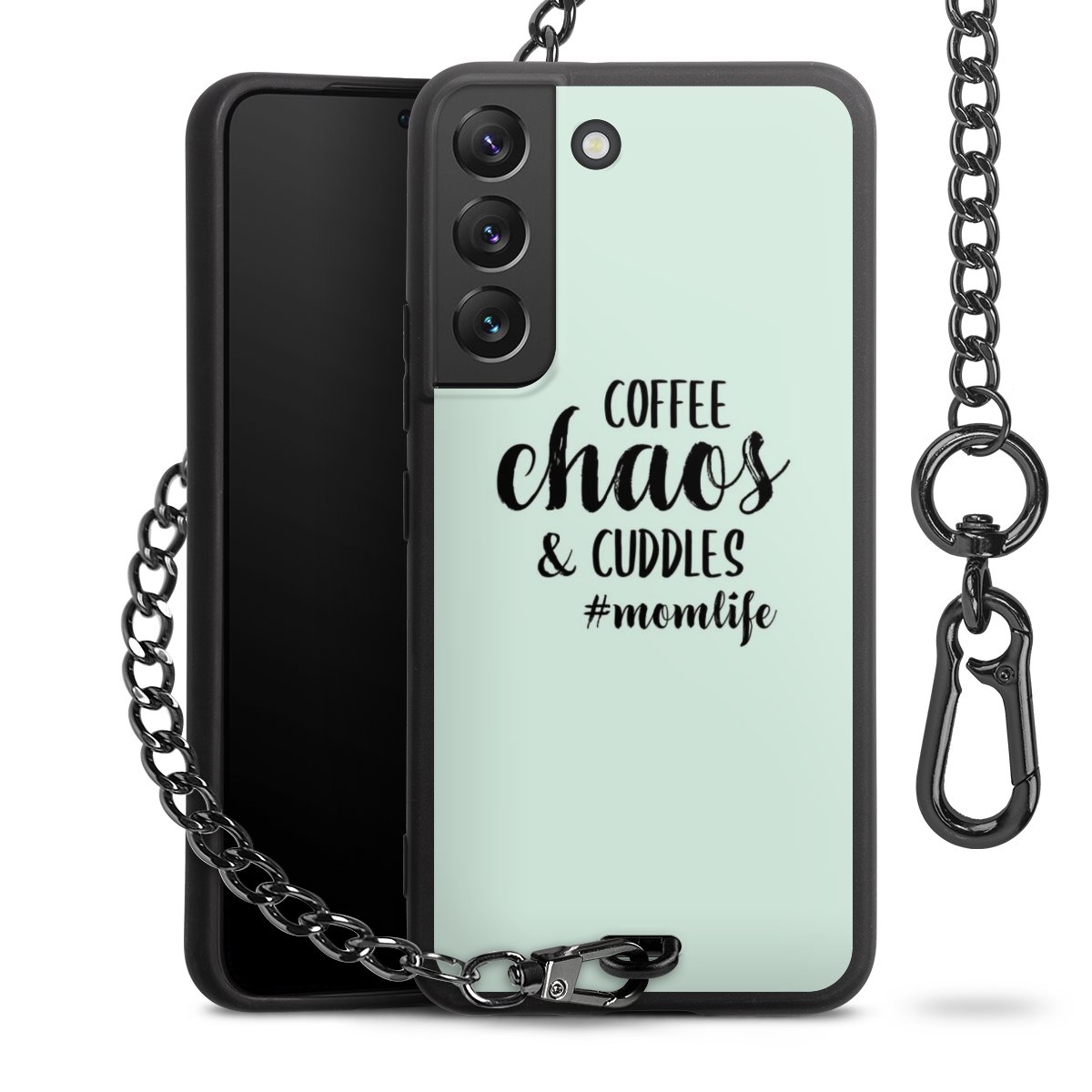 - Mattschwarze Handyhülle mit Metallkette