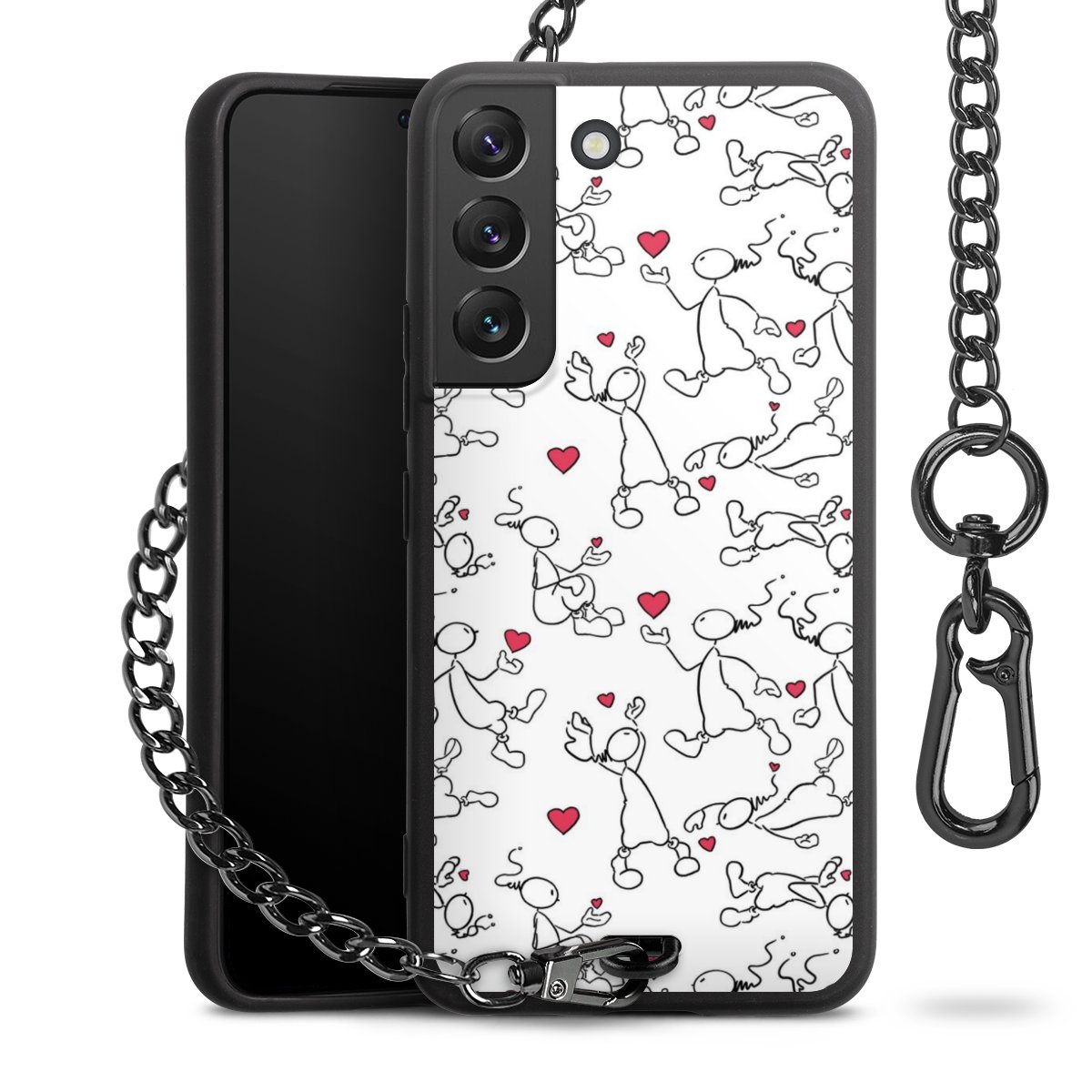 • Mattschwarze Handyhülle mit Metallkette