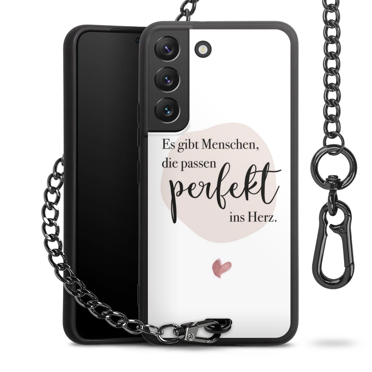 • Mattschwarze Handyhülle mit Metallkette