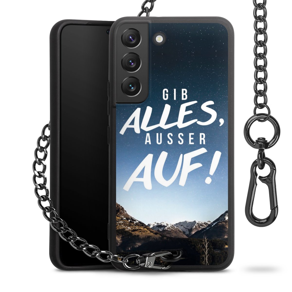 • Mattschwarze Handyhülle mit Metallkette