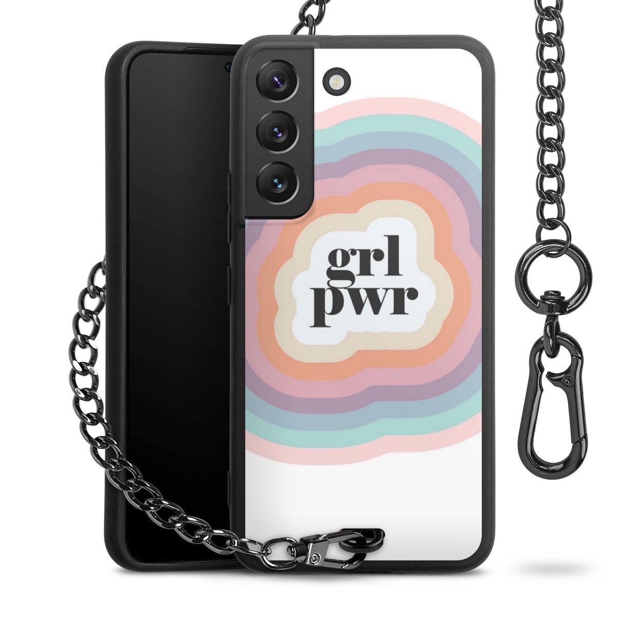 • Mattschwarze Handyhülle mit Metallkette