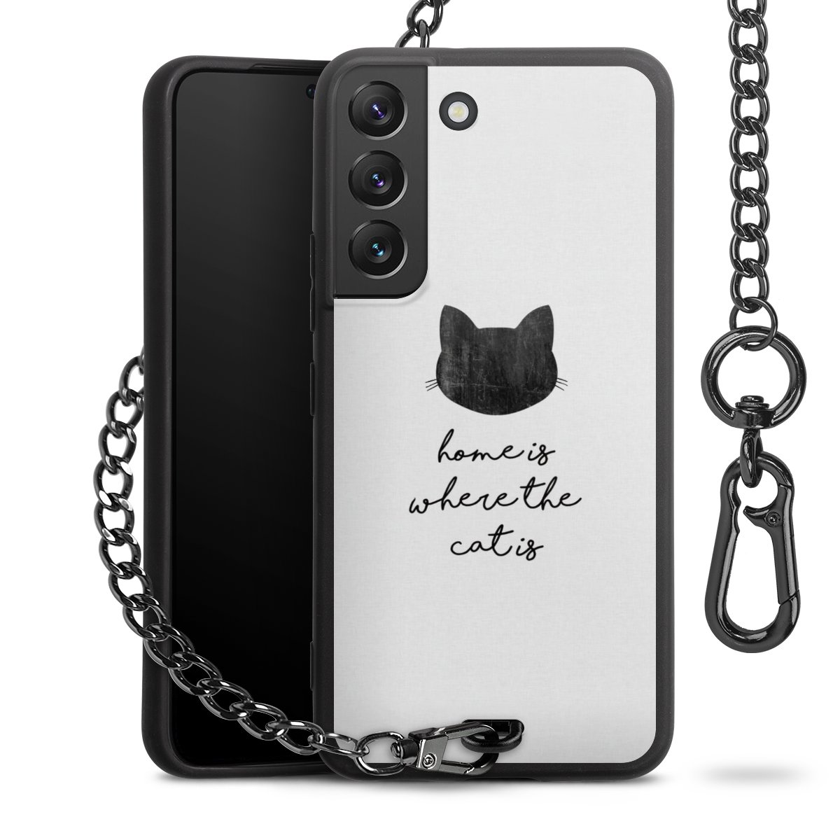 • Mattschwarze Handyhülle mit Metallkette