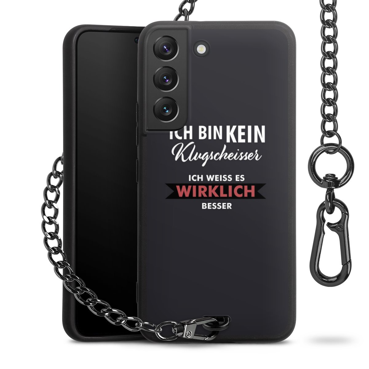 - Mattschwarze Handyhülle mit Metallkette