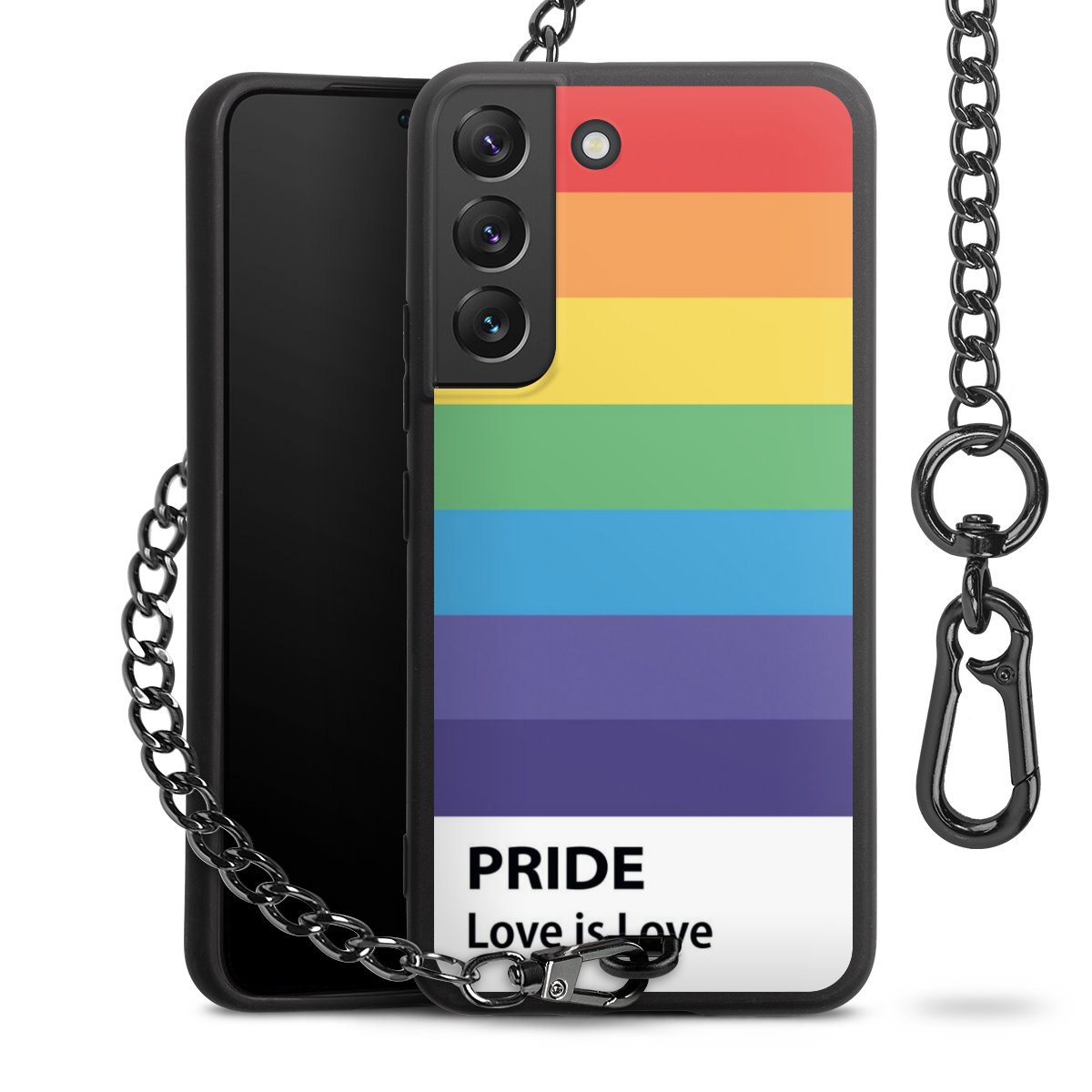 • Mattschwarze Handyhülle mit Metallkette