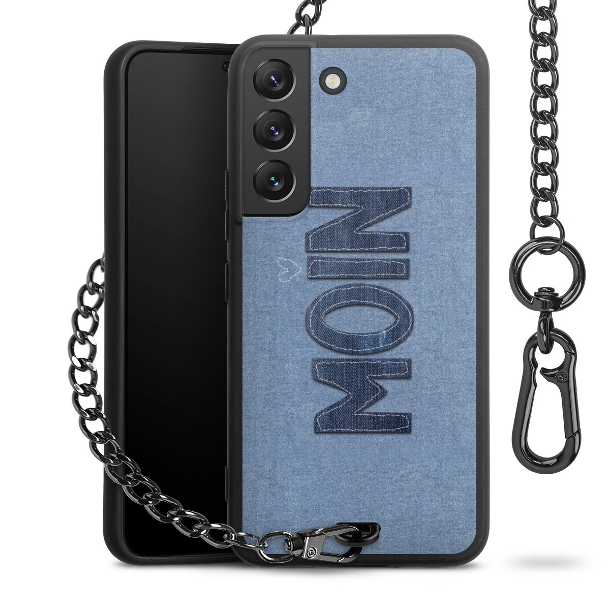 • Mattschwarze Handyhülle mit Metallkette