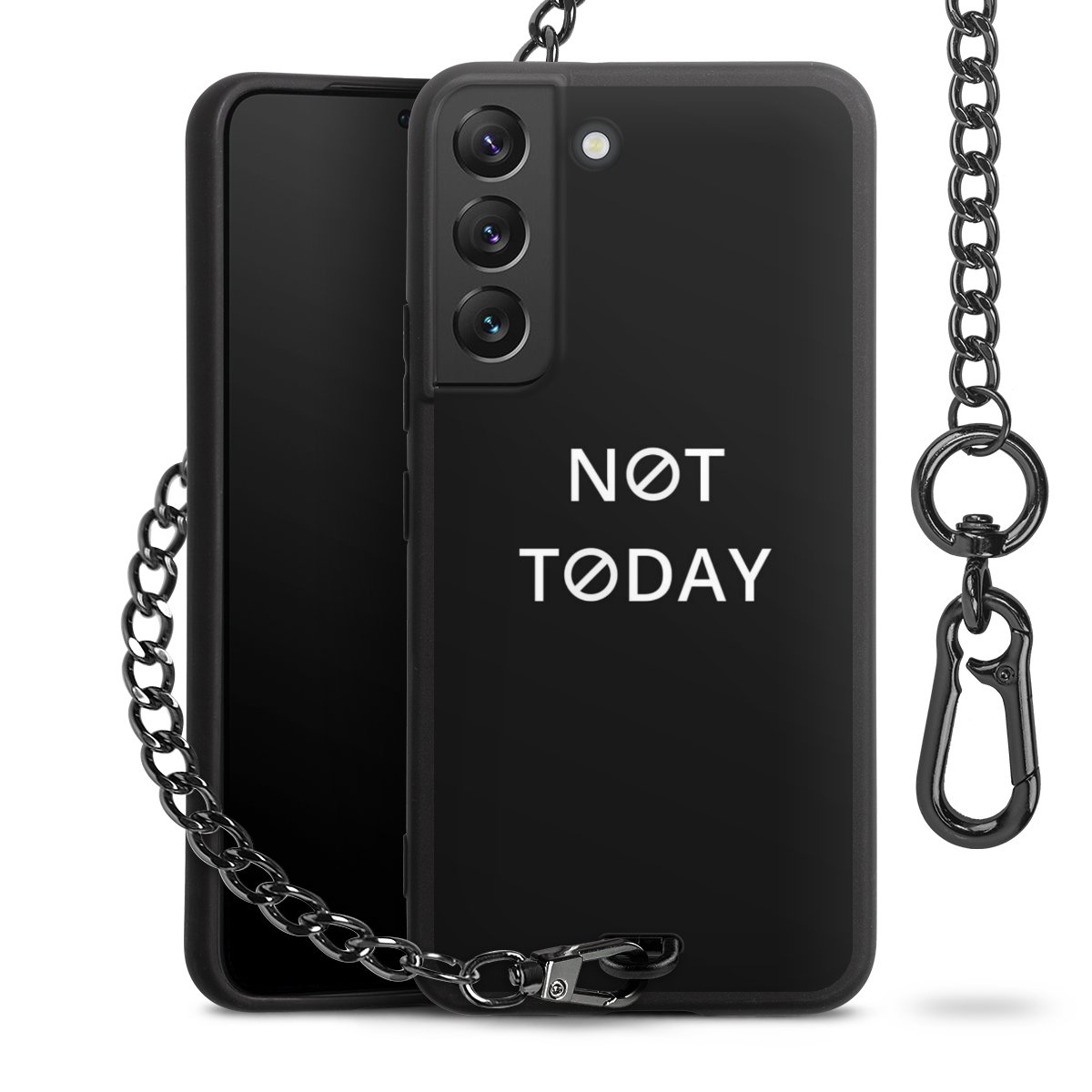 - Mattschwarze Handyhülle mit Metallkette