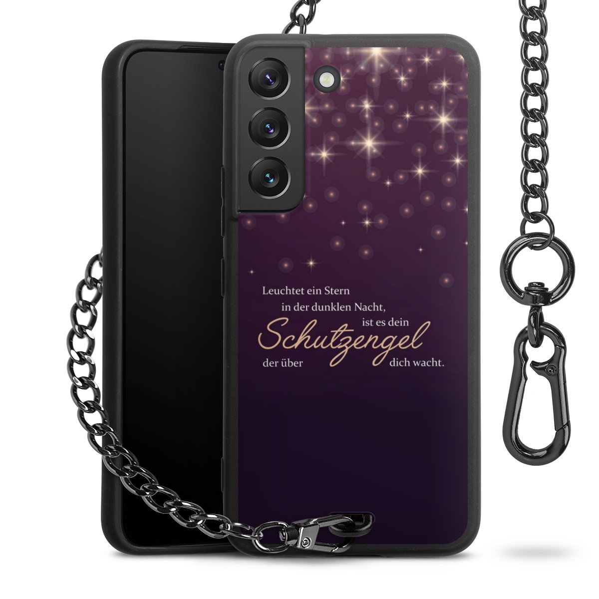 - Mattschwarze Handyhülle mit Metallkette