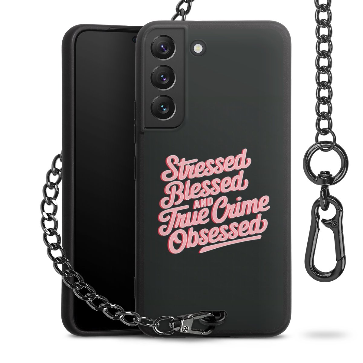 • Mattschwarze Handyhülle mit Metallkette