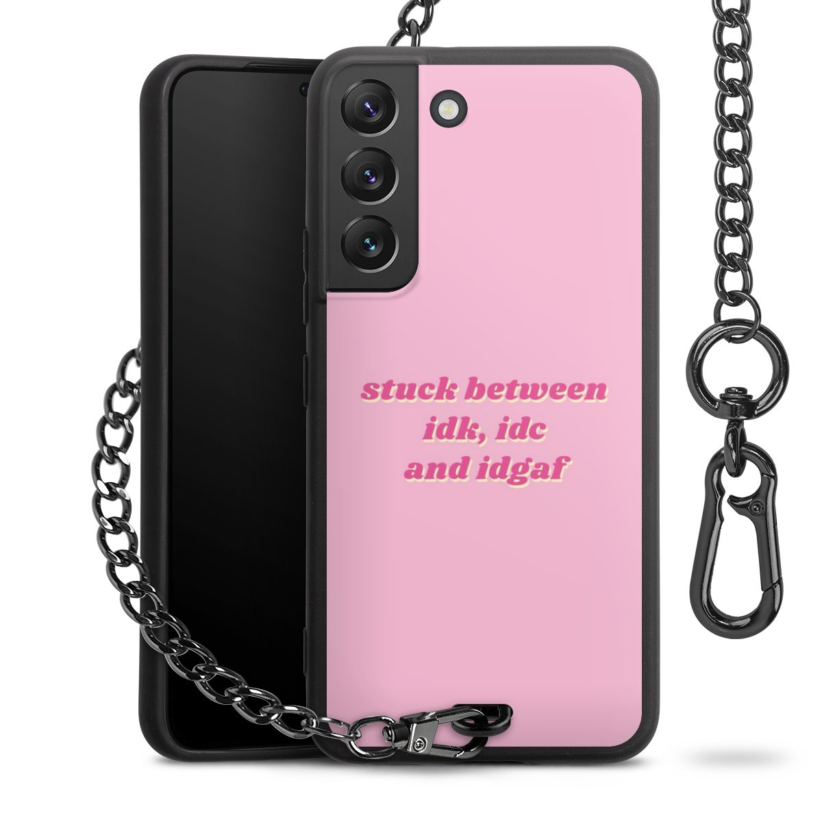 - Mattschwarze Handyhülle mit Metallkette