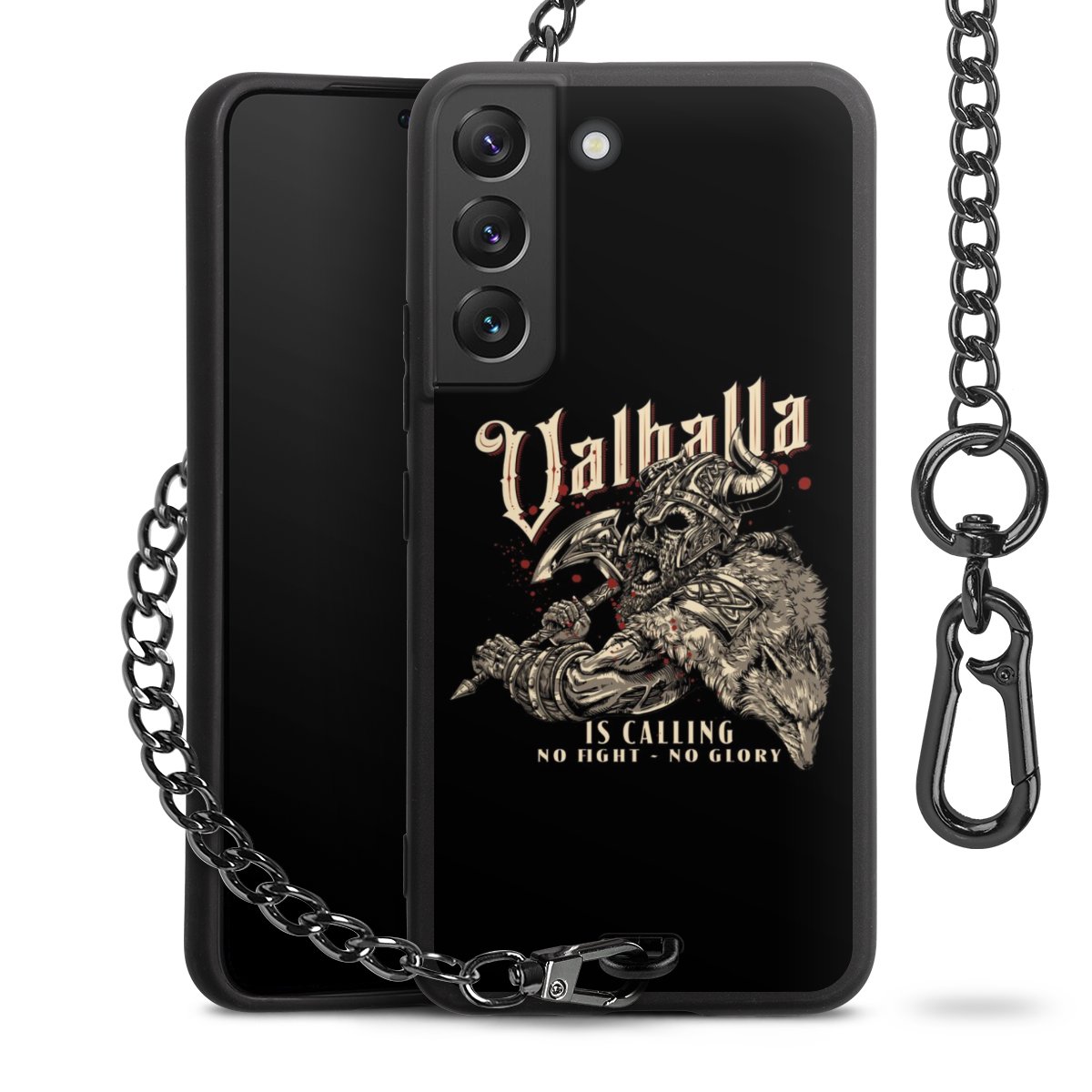 • Mattschwarze Handyhülle mit Metallkette