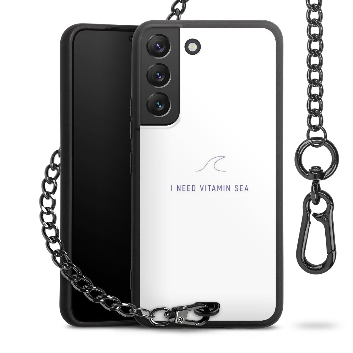 - Mattschwarze Handyhülle mit Metallkette