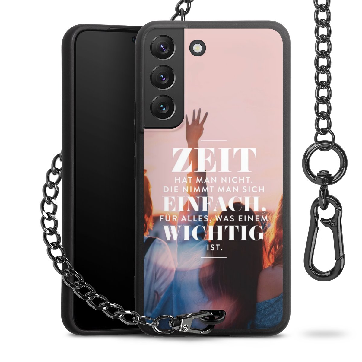 • Mattschwarze Handyhülle mit Metallkette