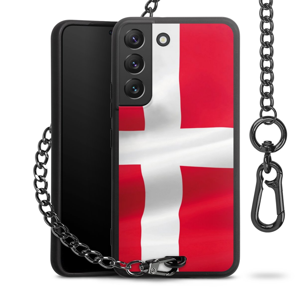 - Mattschwarze Handyhülle mit Metallkette