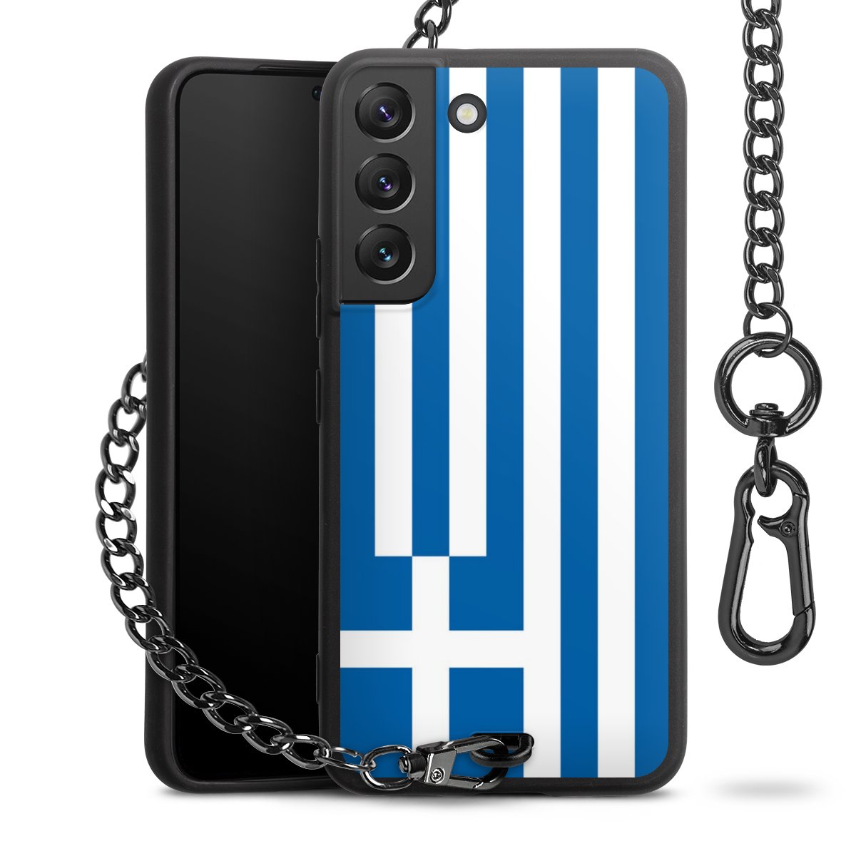 - Mattschwarze Handyhülle mit Metallkette