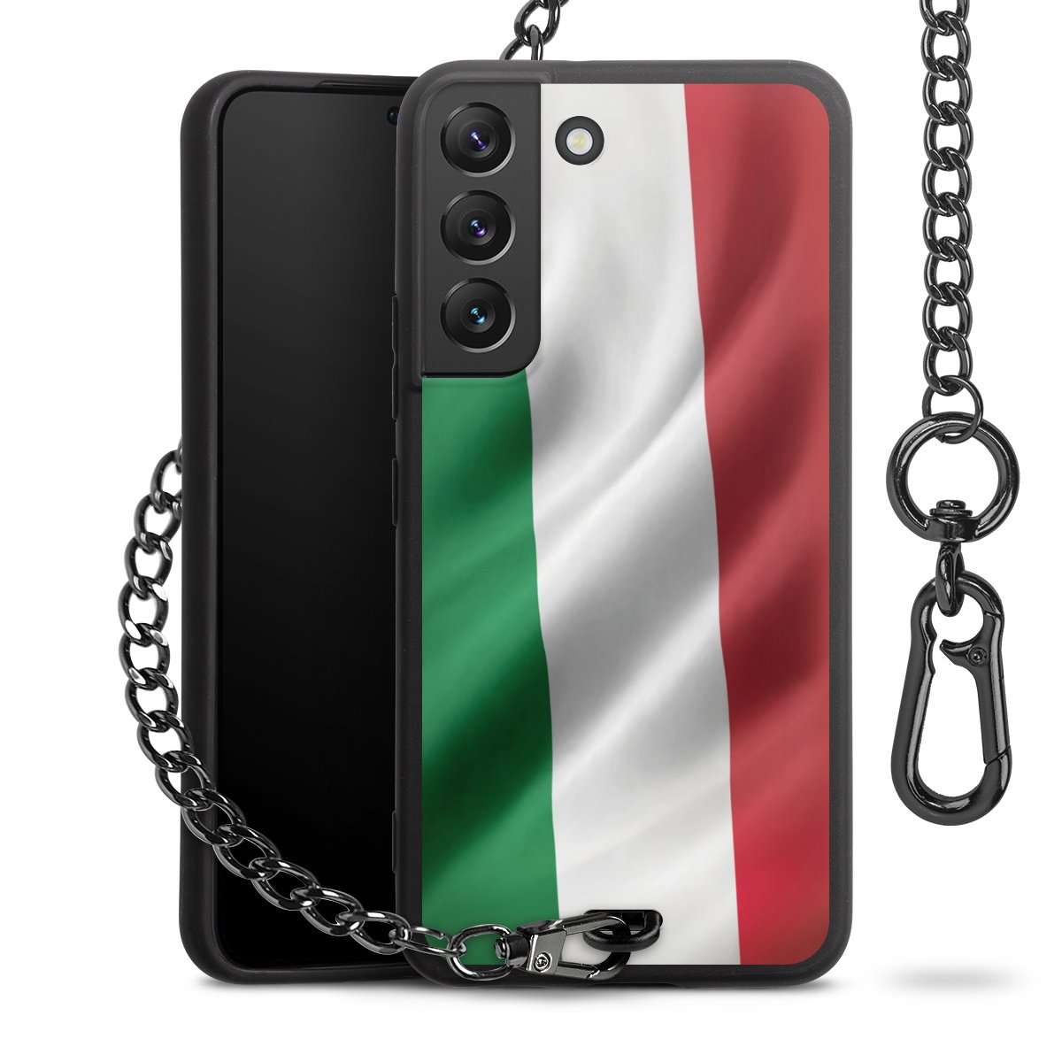 - Mattschwarze Handyhülle mit Metallkette