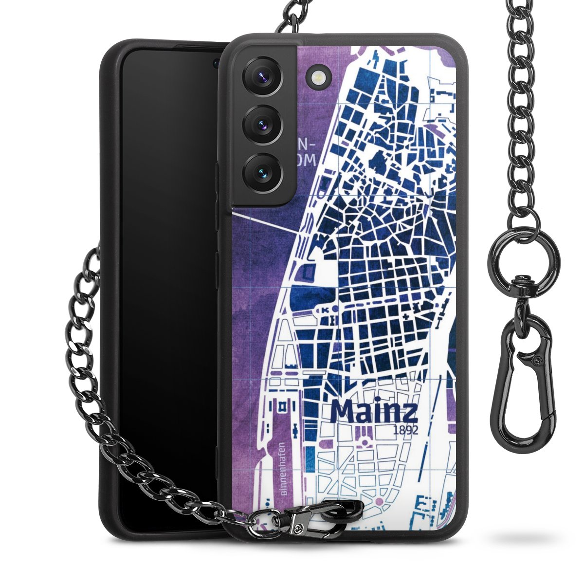 - Mattschwarze Handyhülle mit Metallkette