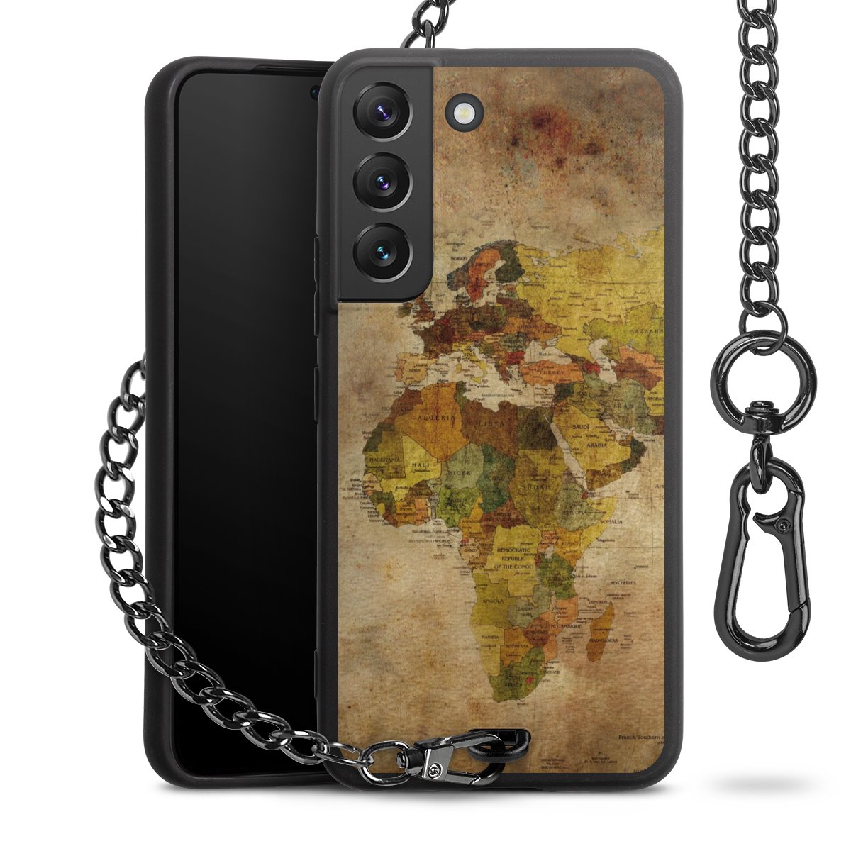 - Mattschwarze Handyhülle mit Metallkette