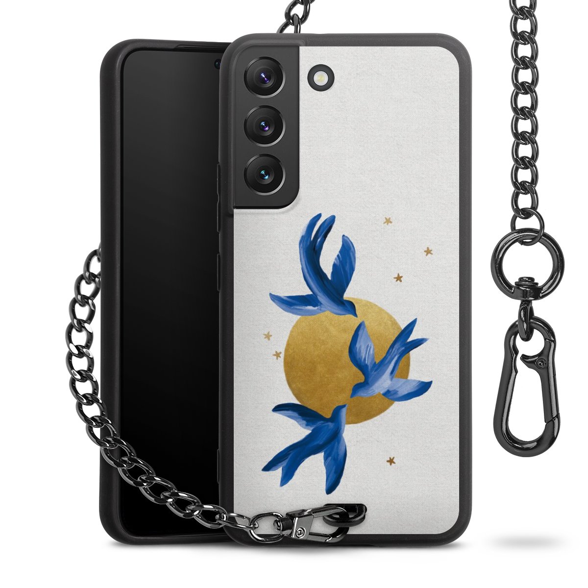 • Mattschwarze Handyhülle mit Metallkette