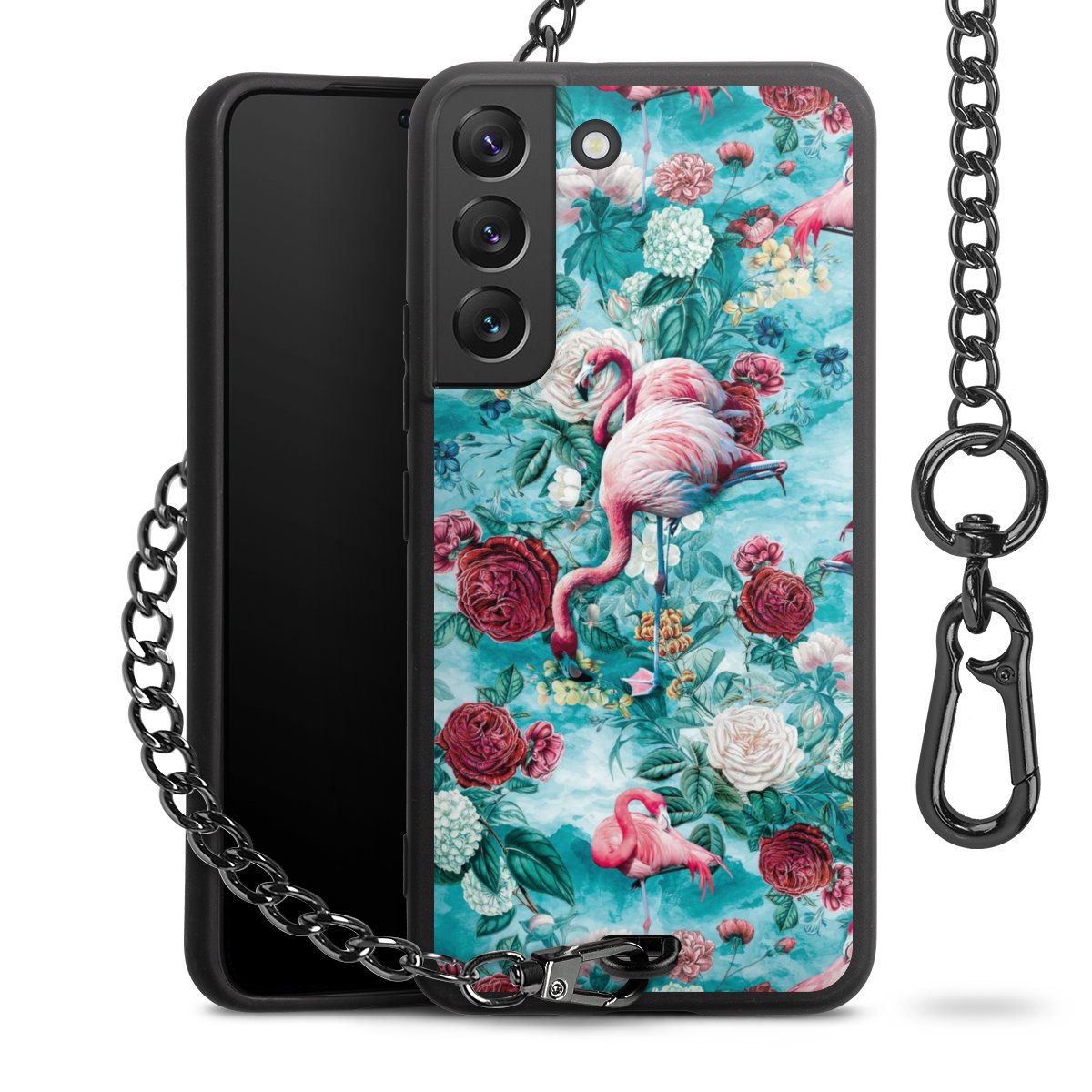 • Mattschwarze Handyhülle mit Metallkette