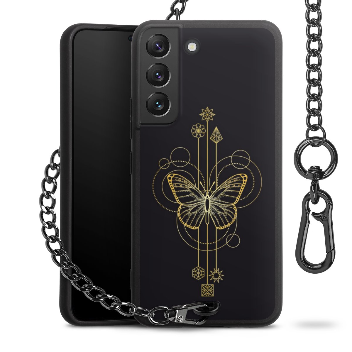 • Mattschwarze Handyhülle mit Metallkette
