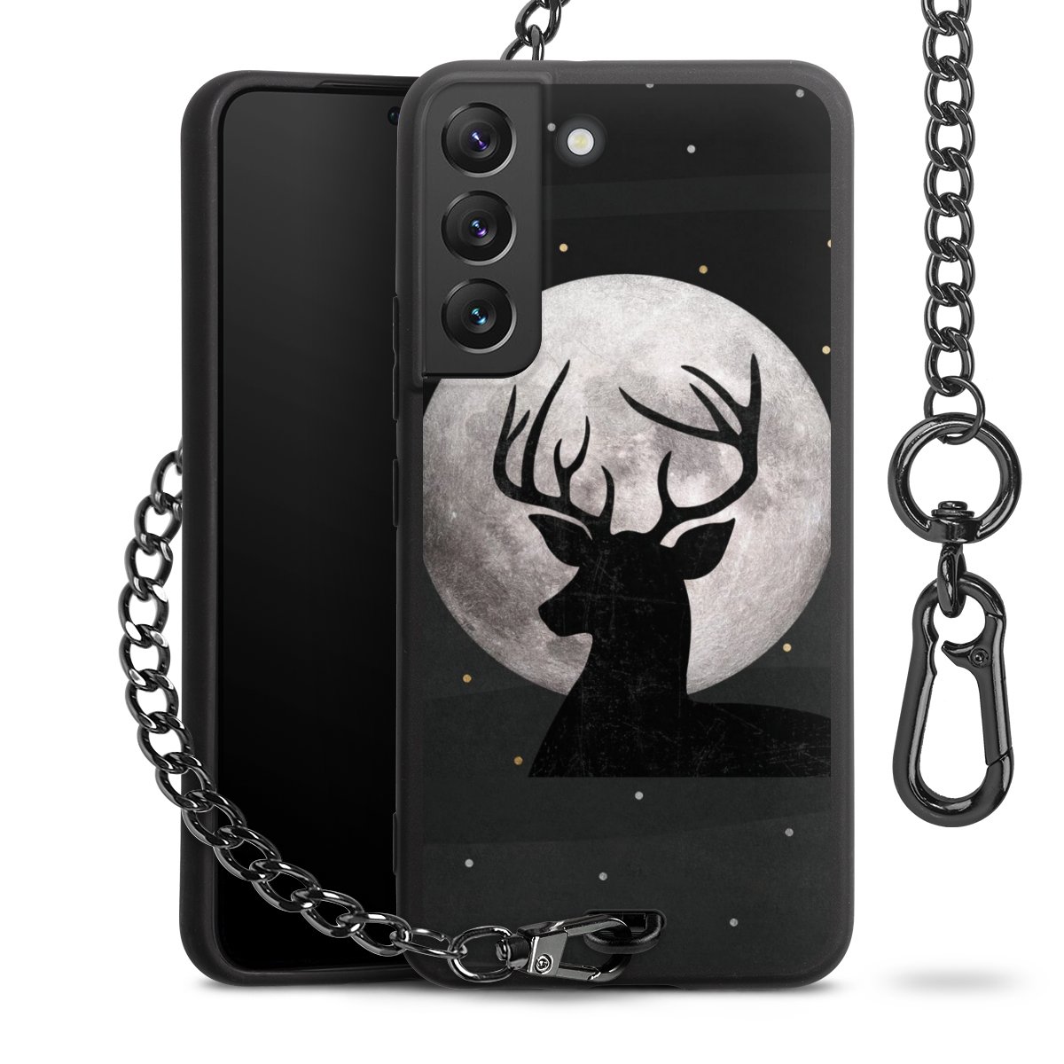 • Mattschwarze Handyhülle mit Metallkette