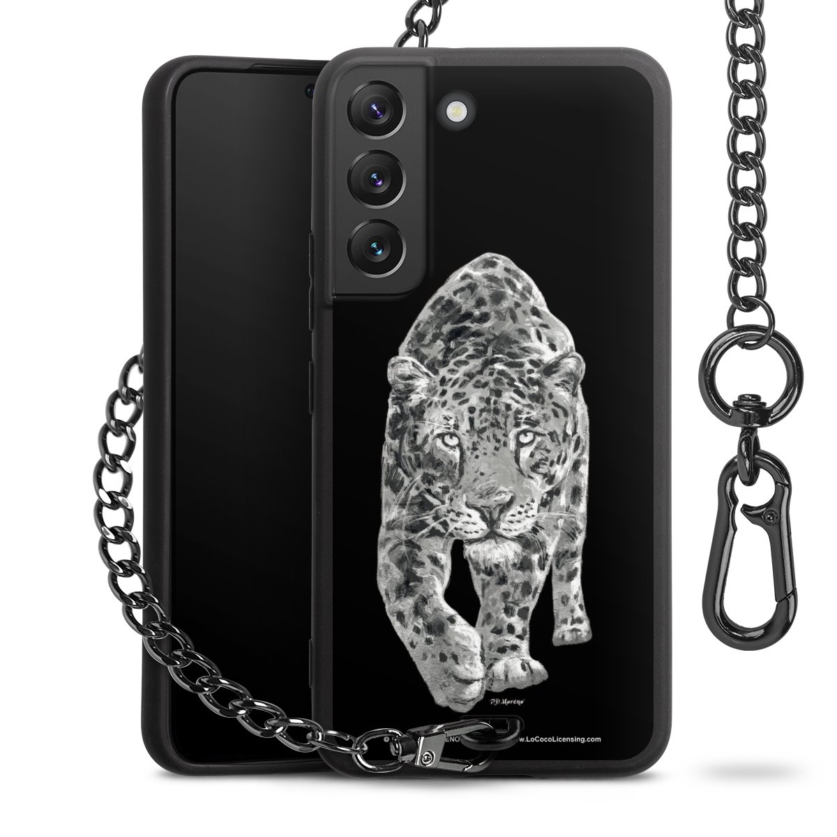• Mattschwarze Handyhülle mit Metallkette