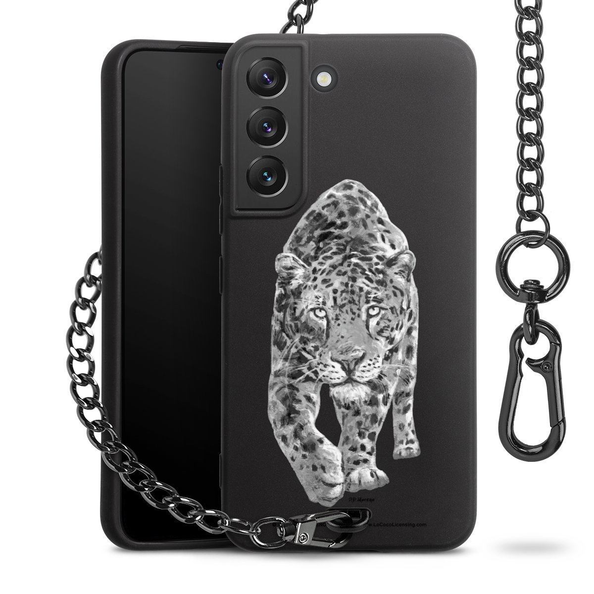 • Mattschwarze Handyhülle mit Metallkette