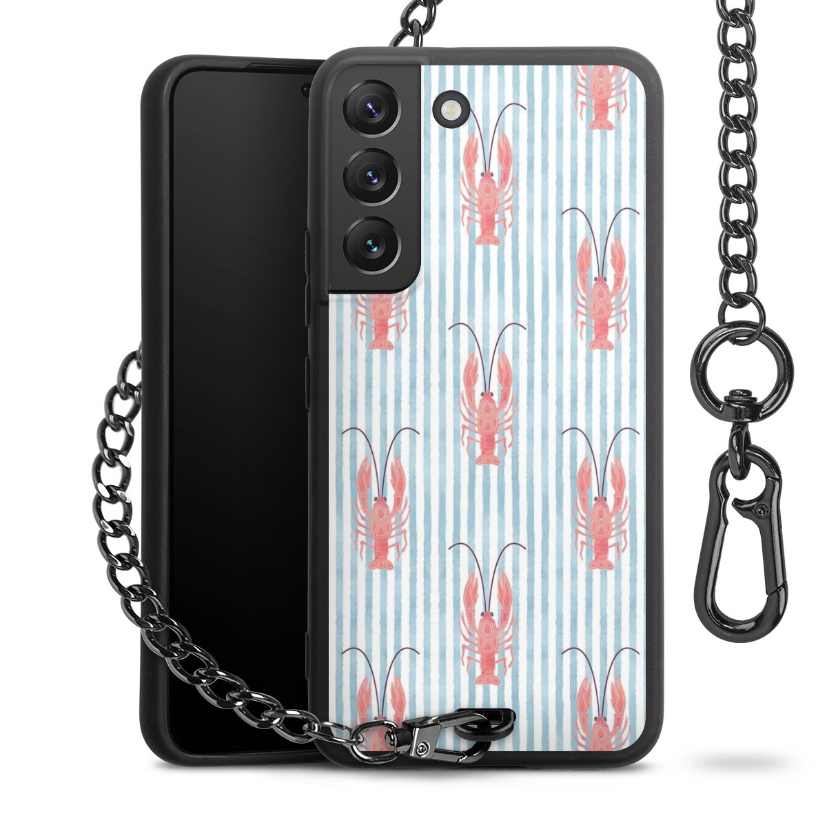 • Mattschwarze Handyhülle mit Metallkette