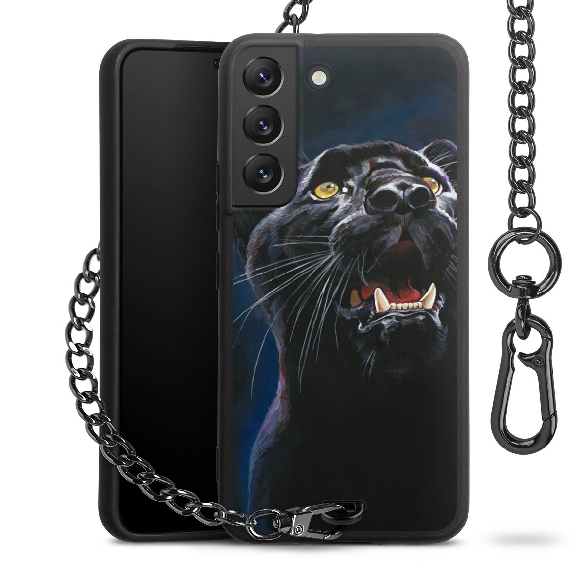 • Mattschwarze Handyhülle mit Metallkette