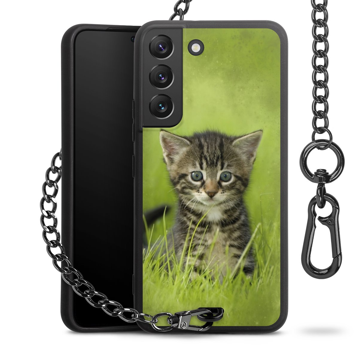 - Mattschwarze Handyhülle mit Metallkette