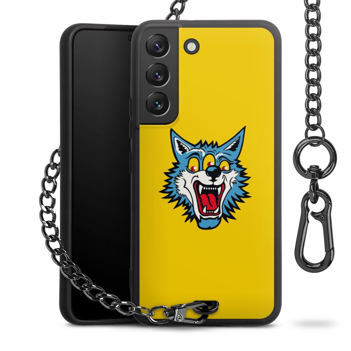 Die Handyhülle verfügt über eine mittig am unteren Rand platzierte Öse, an der die Metallkette stabil befestigt ist. Bestelle die Hülle einfach für Dein Smartphone-Modell, dann passt sie wie angegossen und Du brauchst sie bloß einmal anzudrücken. Handy in die Tasche, Karabiner an den Hosenbund – schon kann die Party starten.
