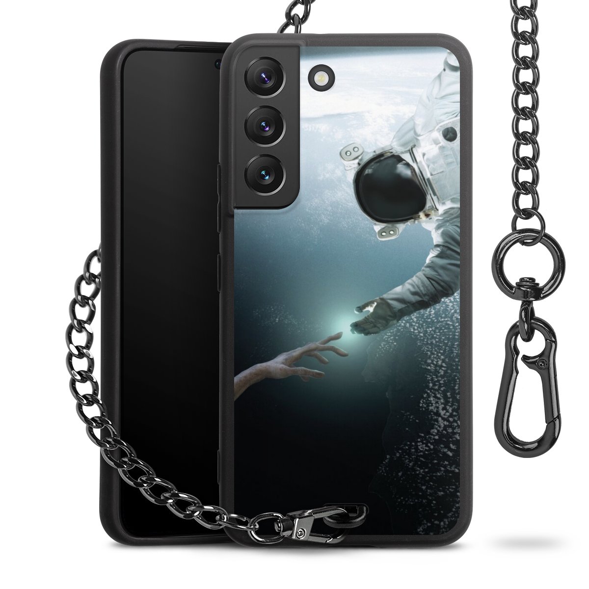 • Mattschwarze Handyhülle mit Metallkette