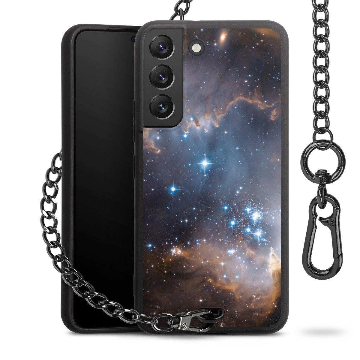 - Mattschwarze Handyhülle mit Metallkette