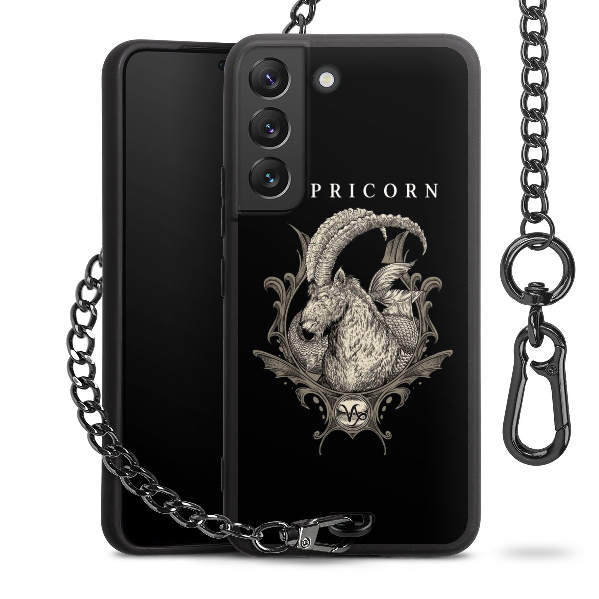• Mattschwarze Handyhülle mit Metallkette