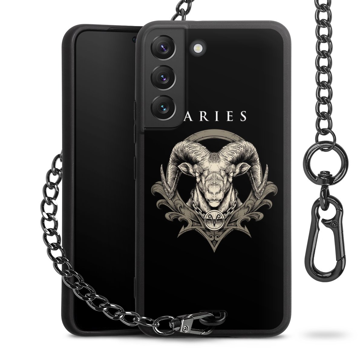 • Mattschwarze Handyhülle mit Metallkette
