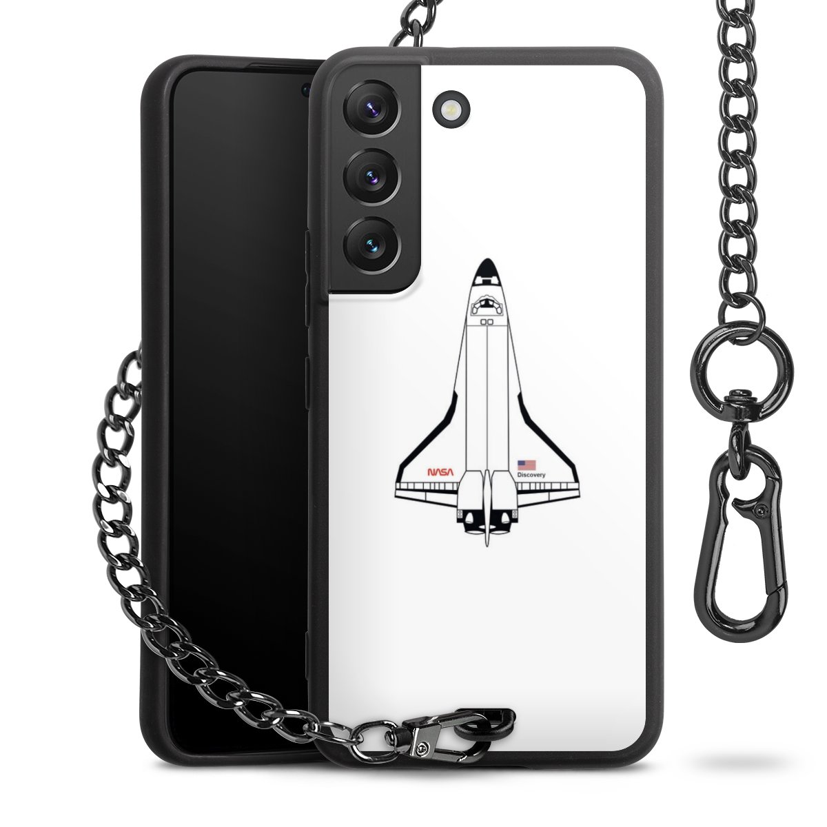 - Mattschwarze Handyhülle mit Metallkette
