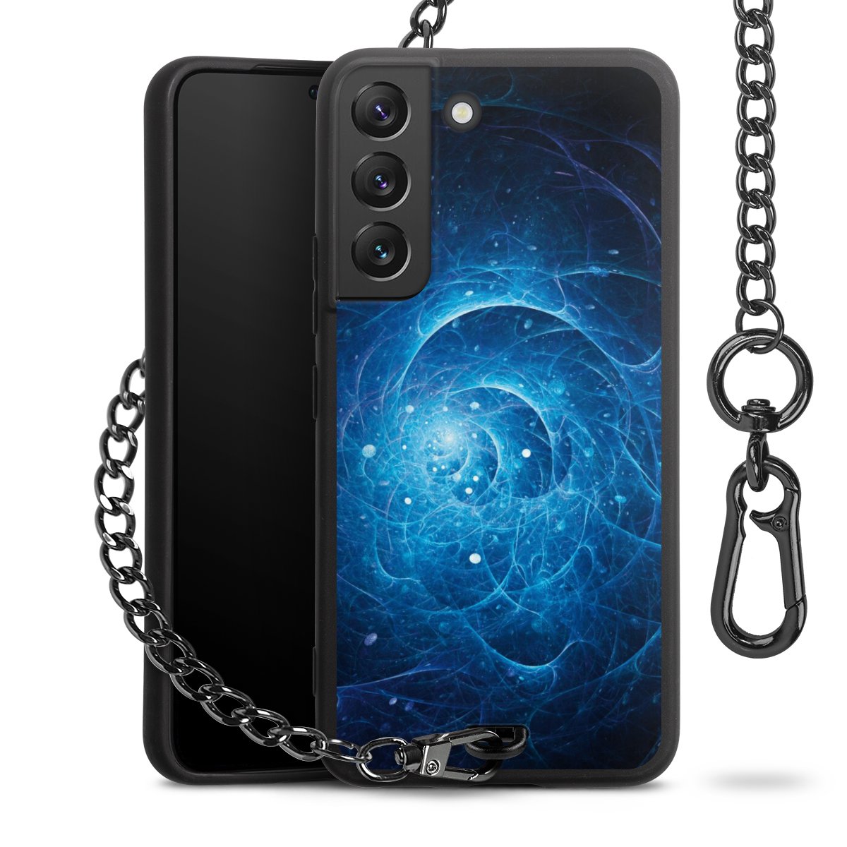 - Mattschwarze Handyhülle mit Metallkette