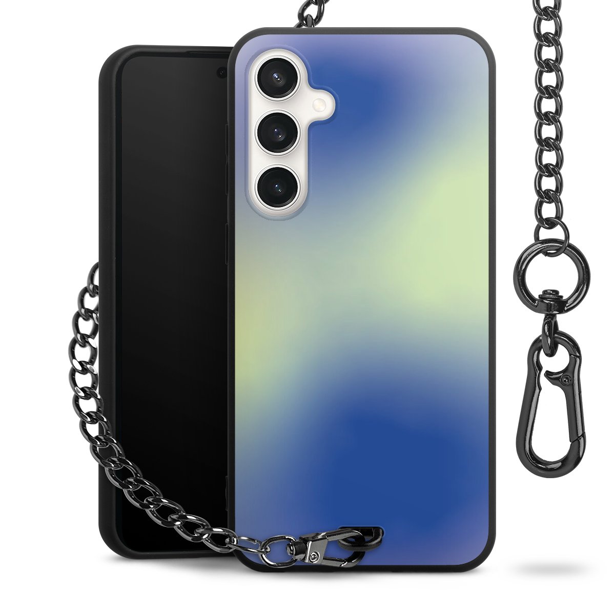 - Mattschwarze Handyhülle mit Metallkette