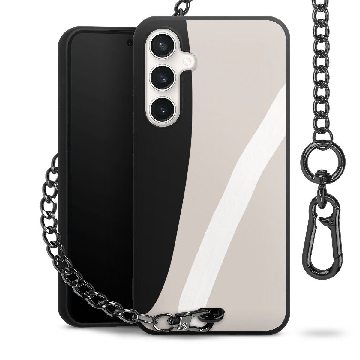 • Mattschwarze Handyhülle mit Metallkette
