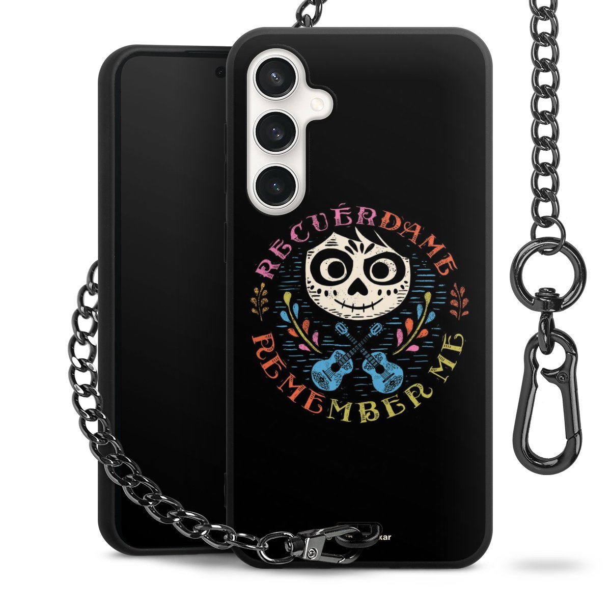 - Mattschwarze Handyhülle mit Metallkette
