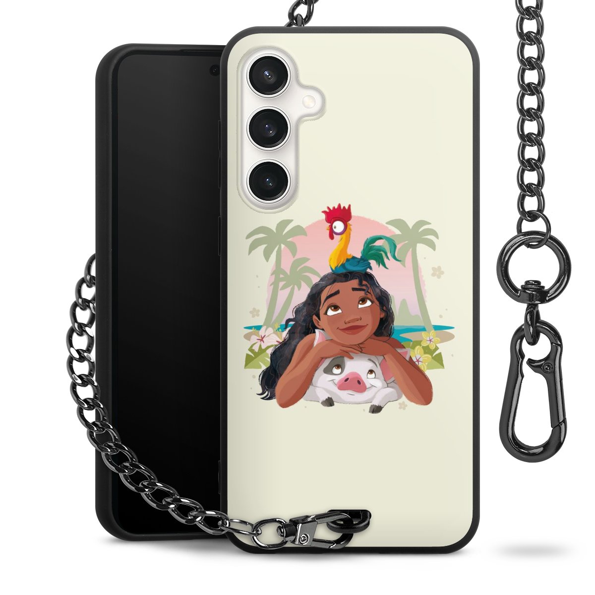 - Mattschwarze Handyhülle mit Metallkette