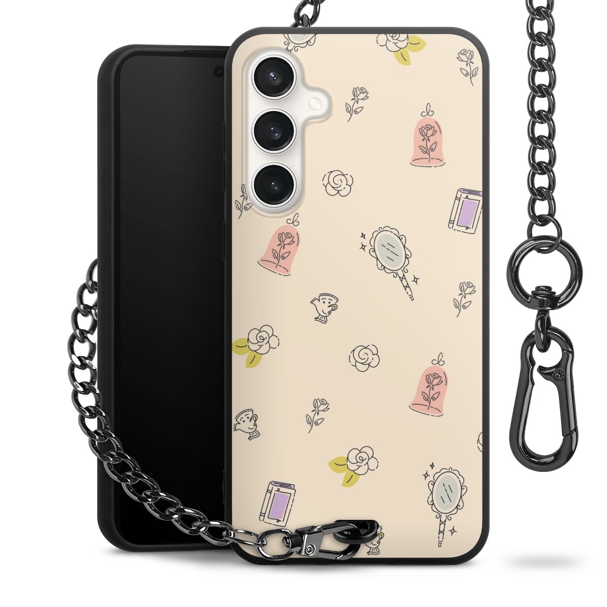 • Mattschwarze Handyhülle mit Metallkette
